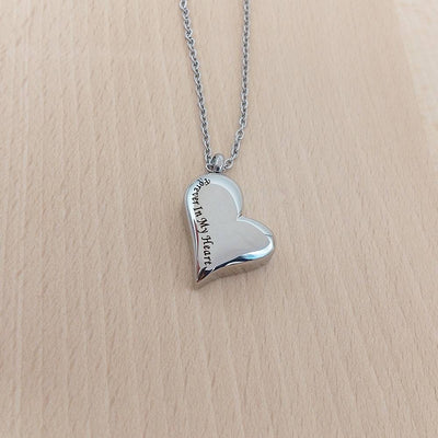 Forever In My Heart Silver Stainless Steel Keepsake Ashes Cremation Urn Memorial Pendant Necklace