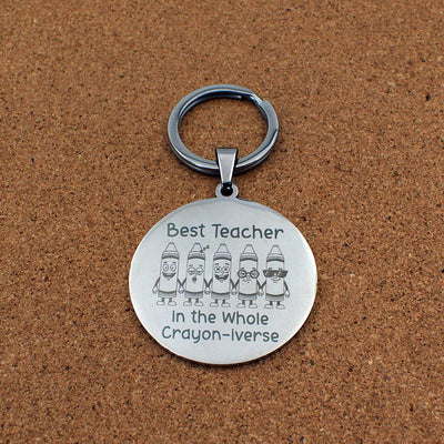 Best Teacher In Crayon-iverse Stainless Steel Keyring Custom Personalised Engraved